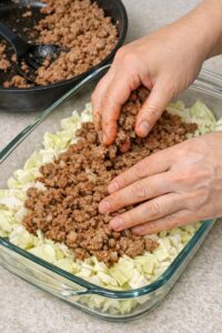 4. Add the chopped cabbage to the skillet, stirring to coat it in the beef juices.